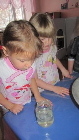 Давайте посмотрим на снег и лёд, которые были в стаканах. Что с ними случилось пока мы играли? (Они растаяли) Правильно, под действием тепла снег и лёд превратились в воду. Значит, снег и лёд образуются из воды под действием мороза.