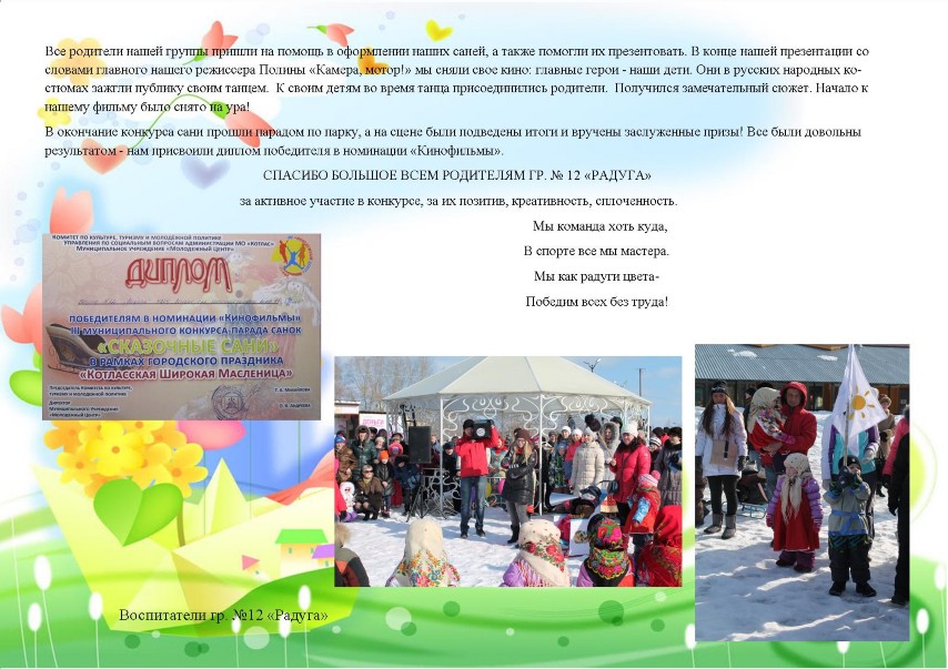 Зарубина Н.В., Плотникова А.А., воспитатели группы "Радуга"
