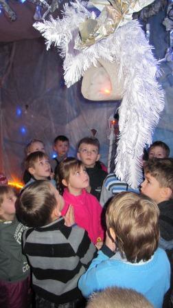 Также дети посмотрели театрализовано-игровое представление «Новые приключения у Королевы Льда» и даже приняли в нем участие. После представления дети посетили волшебный сад Королевы Льда. Птице счастья, живущей в этом саду, дети загадали свои самые заветные желания.