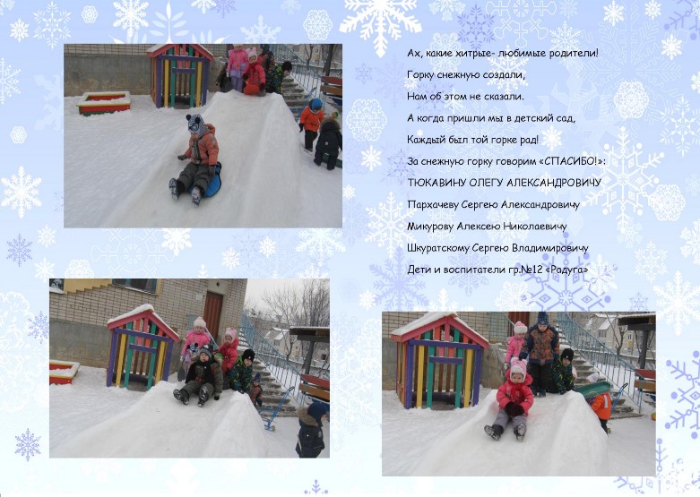 Постройки на участках — способствуют физическому развитию детей, получению удовольствия и радости от двигательной активности в зимний период.