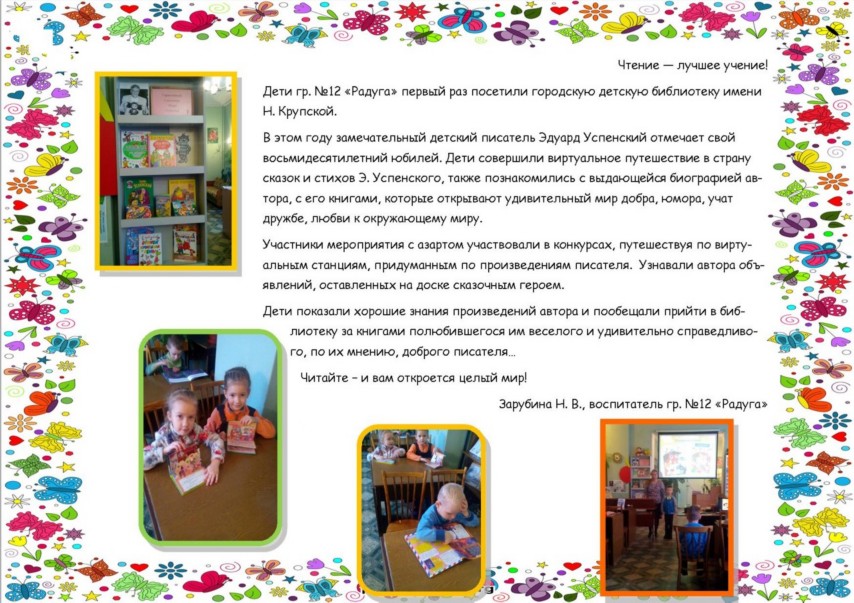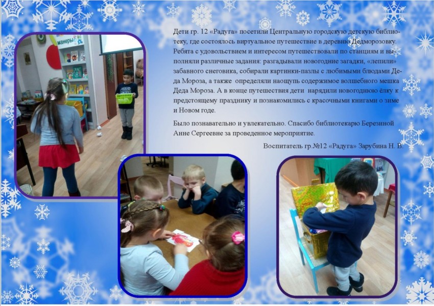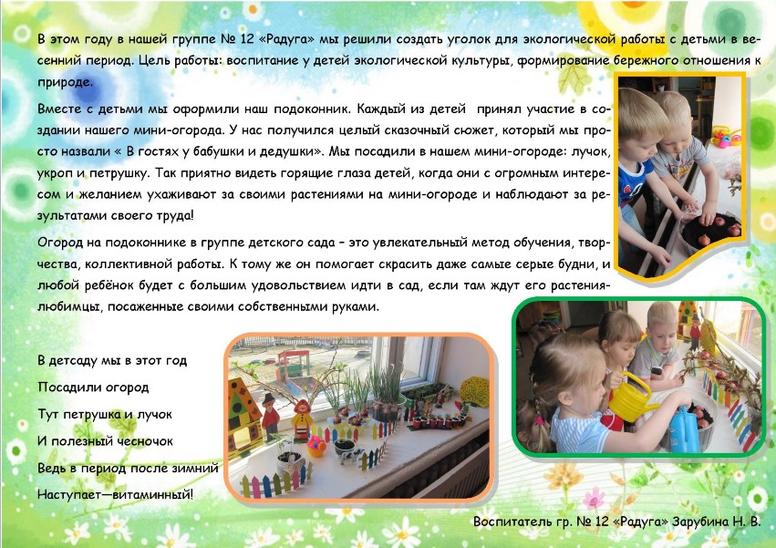 Зарубина Н.В., воспитатель группы №12 "Радуга"