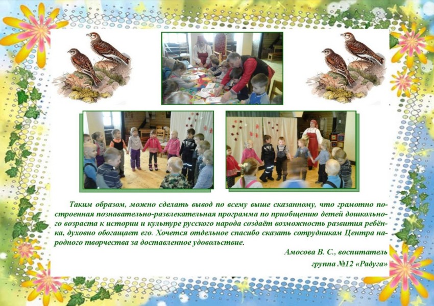 Это мероприятие насыщено богатым фольклорным материалом, и представляет интерес не только для детей, но и для взрослых.