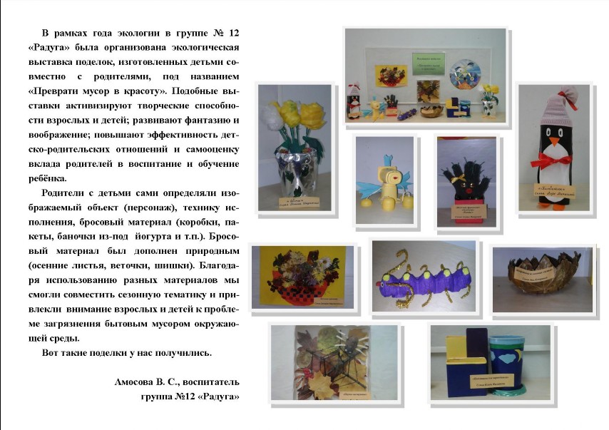 Так и в этом году в группе « Радуга» прошел очередной конкурс « Осенние фантазии». Предлагаем вам посмотреть творческие работы наших воспитанников с родителями. Каждый год коллекция поделок пополняется новыми идеями, не устаёшь удивляться творчеству, находкам и креативности наших родителей.