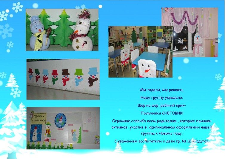 Спасибо большое родителям гр. № 12 «Радуга» за оформление группы к Новому году!